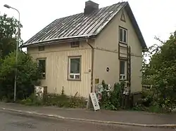 Tahmela is named after a croft of the same name located in the area, built around 1870. The croft was located along the current Selininkatu street.[6] Tahmela was transferred from the municipality of Northern Pirkkala to the city of Tampere at the beginning of 1937. Until then, it had been part of the densely populated municipal community of Pispala. The town plan of Tahmela was confirmed in 1945 at the same time as the town plan of Pispala.[7] The poet Yrjö Jylhä lived in Tahmela in his youth and according to him one of the streets of the district has been named.[8] The former name of the Tahmela Bypass (Tahmelan viertotie) in 1945–1978 was Valtakunnantie and then until 1996 the Tahmela Highway (Tahmelan valtatie). The names refer, on the one hand, to a group of houses known as the "Kingdom of Vuorenmaa", and, on the other hand, that the street was to be built as a highway, like the Paasikiventie north of Pispala, under the Pyynikki Ridge's tunnel.[9] Near Vallikatu are the remains of fortresses built by the Russian army during the First World War, which stretched from Tahmela to the Pispala Ridge.[10] The name Hopankatu derives from a nearby ski jumping hill, built in 1908 and demolished in the late 1980s.[11]