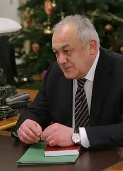 Mamsurov's rule in North Ossetia coincided with a deterioration of the relations with the neighboring republic of Ingushetia with which Ossetians fought a war over the Prigorodny district early in the 1990s. He has accused the Ingushetian authorities of deliberately stirring up the dispute between the two republics and waging an "information war" against North Ossetia.[2] Mamsurov also supports closer cooperation with South Ossetia, Georgia's breakaway region which seeks integration with Russia though a union with North Ossetia. In July 2008, he accused the Western diplomats of plotting a "Jesuitical plan" of uniting South Ossetia and North Ossetia into a single entity in order to then push it into NATO through Georgia.[3]