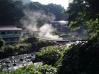The various hot springs in the immediate area are referred to as the Akinomiya Geothermal Area[3] and are situated along the western base of Mount Kurikoma.