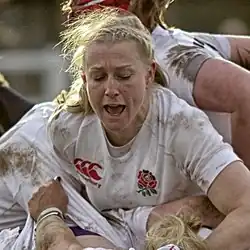 Tamara Louise Taylor (born 8 October 1981) is an English female rugby union player, who captained England in the 2015 Women's Six Nations Championship.[2] She was the 2017 RPA Player of the Year when she was one of only three women who had made more than 100 appearances for her country.[1] She is currently the fourth most capped England women's rugby union player of all time.