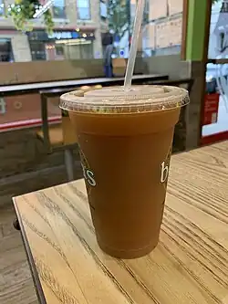 Tamarindo, also commonly known as agua de tamarindo, is a non-alcoholic beverage made of tamarind, sugar, and water. The tamarind plant originated in Africa but has since been widely distributed on a global scale and is commonly found in tropical regions.[1] The tamarind plant produces fruit pods containing pulp and seeds.[2] Tamarind is a versatile ingredient that is used for a variety of commercial, culinary and medicinal purposes with the pulp being the most commonly used part of the tamarind plant, used in a range of beverages including tamarindo and other similar beverages such as Nam Ma Kham Wan in Thailand and Poha Beer in Ghana.[3][1] Tamarind pulp offers a flavour that ranges from sour to sweet, making tamarindo a sour-sweet beverage (dependent on the amount of sugar added, as well as on the tamarind cultivar used) recognised as a popular flavour of aguas frescas, which is traditionally consumed in Latin America.[4] Comprising only three ingredients, tamarindo involves a simple production process making it an easy beverage to prepare at home. Tamarindo has been produced commercially as a soda flavour, by companies such as Jarritos and Nestle, and distributed globally.[5][4]