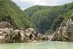 It is formed by the confluence of the Santa Maria River and the Rio Verde, which originate on the Mexican Plateau and flow through canyons in the Sierra Madre Oriental. The rivers join in the Sierra to form the Tampaón and it continues east, emerging onto the Gulf Coastal Plain, where it is joined by tributaries that drain the wetter eastern slopes of the Sierra Madre. It winds eastwards to join the Moctezuma River and form the Pánuco River in Veracruz state.[1]