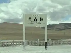 The Tanggula (Dangla) railway station (Chinese: 唐古拉站; pinyin: Tánggǔlā zhàn) is a railway station located in Amdo County, Tibet Autonomous Region, China, near the border with the Tanggula Town, Qinghai Province. The railway station has three tracks, one of them served by a platform, and another one served by a very short stub platform.