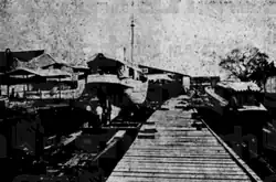 In 1828, as a part of the Jackson Plan, Sir Stamford Raffles intended for Tanjong Rhu to be a shipyard. Prior to the publication of the map, William Flint (who was a "[pioneer] of the shipbuilding business") decided to start a shipbuilding company in Tanjong Rhu in 1822. George Lyons and his brother also set up a shipyard in the 1850s. By the early 20th century, Tanjong Rhu became a venerable shipbuilding hub with many known companies having shipyards there such as Thornycroft[4] and United Engineers as well as having clients such as the Singaporean Marine Police Force and the Ceylon Navy. As a matter of fact, bugis traders from celebes used to anchor their mosquito boats in the Kallang Basin by Tanjong Rhu for trade from the 19th century to the early 1960's before docking to the Telok Ayer Basin.[1] In February 1977, government ordered for the Kallang Basin (including the Tanjong Rhu shipyard) to be cleaned up since it was polluted.[5] This resulted in only five shipyards remaining as they complied with the government's prerequisite of upgrading their facilities as well as complying with pollution regulations by 29 June 1985. Additionally, the coffin-makers, firewood and charcoal dealers, godowns, rubber and sawmills, and squatters in Kampong Arang (near Tanjong Rhu Shipyard) were phased out by 1982, with them receiving compensation following recent appeals to the Singapore Land Authority.[6] By January 1987, the charcoal and firewood dealers moved Lorong Halus at the mouth of the Serangoon River whilst the rest (except for the squatters) were moved to factories with proper apparatus for their respective skill trade.[5]
