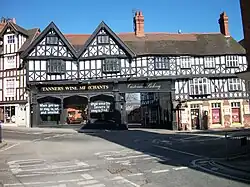 The original Tanners cellars were underneath Shrewsbury’s Victorian Market Hall (since demolished).[7] When these were requisitioned during the Second World War the company moved its head office to its current premises in Wyle Cop, Shrewsbury, parts of which date back to the 1490s and are Grade II listed. These were the former premises of Thomas Southam & Sons and the firm operated for some years subsequently as ‘Tanner & Southam’.