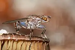 Adults of this genus are medium to large sized flies of medium to robust build with rounded heads, bristles on the thorax, spines on the femora, and wings that lack any dark markings.[3] The exact morphology of the reproductive system differs between species, with specific differences more noticeable in the male reproductive systems than in the female reproductive systems.[5]
