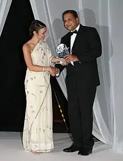 Ghaffur receiving the Asian Woman Magazine Lifetime achievement award 2007