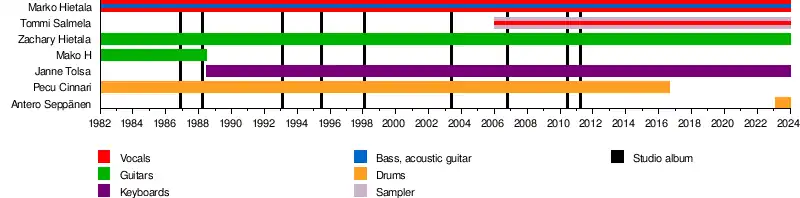 - Marko Hietala – lead vocals, bass, acoustic guitar (1982–2016, 2023–present)