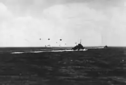 ![]() Task Force 44 (temporarily redesignated as Task Group 17.3) under Japanese air attack on 7 May 1942 during the Battle of the Coral Sea | |