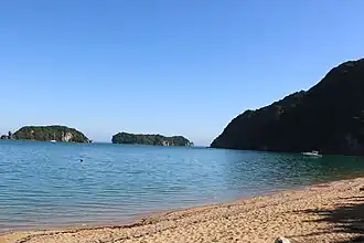 Tata Islands are a pair of small uninhabited islands off the north coast of New Zealand's South Island. They are located some 20 kilometres (12 mi) to the northwest of Tākaka in the southeast of Golden Bay close to Abel Tasman Point, and are contained within Abel Tasman National Park.[1] The small settlement of Tata Beach lies on the South Island mainland one kilometre to the south of the islands.
