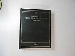 Tatar Encyclopedia Institute further started work on developing multi-volume Tatar Encyclopaedia (in Russian – vol.1 in 2002, vol.2 in 2005, vol.3 in 2006, vol.4 in 2008 & vol.5 in 2010: in Tatar – vol.1 in 2008; vol.2 in 2011; vol.3 in 2012), Tatarstan: Illustrated encyclopedia (in Russian, 2013).[2][3] The responsible editor for the encyclopedia is Gamirjan S. Sabirjanov.