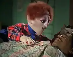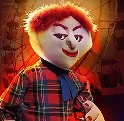 Tatya Vinchu's design was created by puppeteer Ramdas Padhye to blend horror and comedy, while also incorporating Western influences. The inspiration for the puppet's design came from the doll character "Mamooji" in the 1983 film Mahaan, which had a square face, large nose, and tousled straight hair, eventually influenced the creation of the Tatya Vinchu.[12] The puppet was designed to function as a ventriloquist puppet, with moving lips, eyes, eyebrows, and neck, allowing for expressive manipulation. The character's Western-style clothing contrasted sharply with the rural setting of the film, highlighting cultural dissonance.[6]