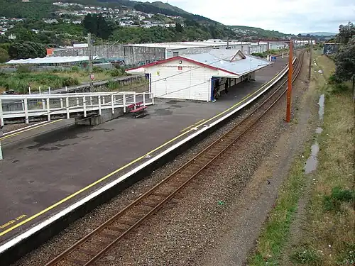 Tawa railway station, originally called Tawa Flat, is on the North Island Main Trunk Railway (NIMT) and is part of the suburban rail network of Wellington, New Zealand. It is double tracked with an island platform, and is 13.75 kilometres (8.54 mi) from Wellington railway station, the southern terminus of the NIMT. The station serves the suburb of Tawa.