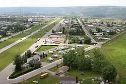 The town uses the Peace River which flows eastward as a source of drinking water and as outlet for industrial waste. The drinking water supply comes from an intake pipe southwest of town. The water is mechanically and chemically filtered then pumped to a reservoir on a ridge north of town. A gravity pump moves the water to the town from the reservoir using 18 km of watermains.[13] Sewage is collected by 13 km of sanitary sewers and processed by a two-cell lagoon system before being absorbed into the ground.[13]