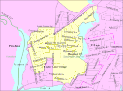 - ^ "Geographic Identifiers: 2010 Demographic Profile Data (G001): Taylor Lake Village city, Texas". United States Census Bureau. Retrieved June 26, 2012.