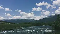 The Tazha river valley is known for its pristine nature and offers favourable conditions for tourism and family recreation. There are beautiful waterfalls along the river and some of its tributaries, the largest of which are Kademliysko Praskalo (72 m),[3] located on its small left tributary, the Kademliyska reka, and Babsko Praskalo (54 m) on its left tributary the Babska reka.[2][4] Before leaving the Balkan Mountains, the river forms the remarkable 2.5 km long Tazha Gorge with slopes reaching height of 300–400 m.[2]