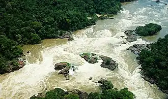 The Teles Pires (Portuguese: Rio São Manuel) is a 1,370 km (850 mi) long river in Brazil.[1] The river flows through the state of Mato Grosso and its lower part marks the border between the states of Mato Grosso and Pará. At its mouth it joins Juruena River and together they form the Tapajós, which is one of the biggest tributaries of the Amazon River. The most important settlement along the river is Alta Floresta. One writer says that it was originally called the Paranatinga, and was renamed after Captain Telles Pires who died exploring the river in 1889.[5]