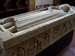 13th-century Gothic sarcophagus from the Monastery of Santa María de Trianos, now at the Church of San Tirso in Sahagún.