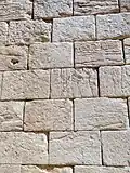 The Temple of Anahita is a large rectangular room in the shape of a cube in a depression 6 meters above the ground, each side of which is nearly 14 meters. It is built of carved stones without mortar, double-walled, and in the Achaemenid architectural style. These stones are connected to each other with iron fasteners. A staircase from the palace was also connected to this temple. The temple has no roof and the purpose was to bring the water of the Shapur River, which flows 250 meters away, into the temple, so that after flowing inside the temple, it would be discharged through a Qanat.[8][9]