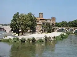 Southern end of the Isola Tiberina, site of the temple of Faunus.