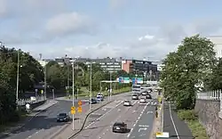 Traffic over the valley-like passage is over bridges, and the street has been called difficult to cross.[1] The street cuts Vallila in half, and has been said to favour throughfare of cars and to be a challenge for bicycles and pedestrians.[3] The new zoning plan for the area with new traffic solutions and park areas is intended to make the street less of a passageway, and to develop the street area as an area for jobs and as an extension to the city centre.[4][5]