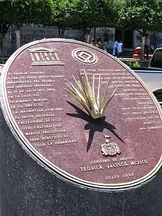 Plaque commemoration Tequila's inclusion into the World Heritage List