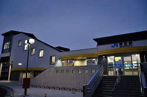 - ^ "移動等円滑化取組報告書(鉄道駅)" (PDF) (in Japanese). JR West. 2024. Retrieved 13 March 2025.
