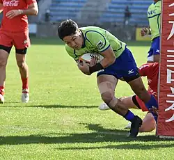 Teruya Goto (後藤 輝也, Gotō Teruya; born December 18, 1991) is a Japanese rugby sevens player. He competed for Japan 7s at the 2016 Summer Olympics in Brazil.[1][2][3][4] He scored the first try in their upset against New Zealand at the Olympics.[5][6]