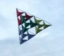 A tetrahedral kite is a multicelled rigid box kite composed of tetrahedrally shaped cells to create a kind of tetrahedral truss. The cells are usually arranged in such a way that the entire kite is also a regular tetrahedron. The kite can be described as a compound dihedral kite as well.