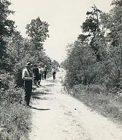 Larey spotted an old car parked off the road but found it empty, and was again confronted by the attacker, who asked her why she was running.[11] When she said that he had told her to do so, he called her a liar before knocking her down and sexually assaulting her with the barrel of his gun.[12] After the assault, Larey fled on foot, running a half-mile (800m) to a nearby house;[12] she woke the inhabitants and phoned the police.[13] Meanwhile, Hollis had regained consciousness and alerted a passing motorist, who also called the police.[14] Within thirty minutes, Bowie County Sheriff W. H. "Bill" Presley and three other officers arrived at the scene, but the assailant had already left.[14] Larey was hospitalized overnight for a minor head wound. Hollis was hospitalized for several days to recover from multiple skull fractures.[15]