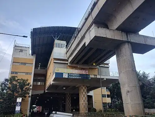 Thalaghattapura is an elevated metro station on the North-South corridor of the Green Line of Namma Metro in Bengaluru, India.[1][2] This station was opened on 21 January 2021 to the public. The station was inaugurated along with five other stations, as a part of the Green Line extension.[3][4]