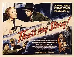 That's My Story is a 1937 American drama film directed by Sidney Salkow from a screenplay by Barry Trivers. The film stars William Lundigan, Claudia Morgan, and Herbert Mundin.