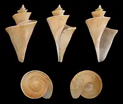 (Original description) The solid shell is angularly pyriform. The spire is prominent, shorter than the aperture. It is many-whorled with whorls flattened above, strongly keeled at the periphery and contracted below. The aperture shows a broad incurved sinus between the extremity of the last keel and the junction of the body whorl. The siphonal canal is wide and open. The columella is smooth. The outer lip is simple below the sinus.[2]