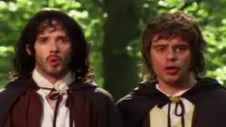 In a park, the guys film a music video parodying The Lord of the Rings. The lyrics summarise the story from the first film and the end of the third film.[1] Greg acts as cameraman whilst Bret plays both Frodo and Legolas, Jemaine plays Sam and Gimli, Murray plays Gandalf, Mel plays Arwen, Eugene plays Saruman and Dave plays Aragorn. "Frodo"[2][3] (a.k.a. "Frodo, Don't Wear the Ring"[4]) is sung in a mix of styles including folk, heavy metal and rap.