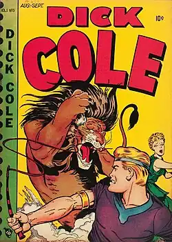 Billed as "America's Number One School Star", Dick Cole starred in a backup feature in Novelty Press' Blue Bolt[1] (and later 4 Most), with regular stories about the young hero appearing until 1949. The character got his own book with five issues of Dick Cole (Novelty Press/Star Publications, 1948-1949), illustrated by L. B. Cole, Joe Certa, Jim Wilcox, Al Fagaly, Jack Hearne, and others.[2] L. B. Cole continued the title for five more issues at Star Publications in 1949–1950. (Many of the stories published in the Star issues were reprints from Blue Bolt and another Novelty Press title, Target Comics.)