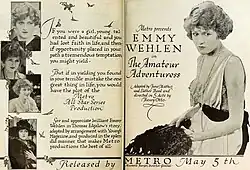 The Amateur Adventuress is a lost[1] 1919 American silent comedy film directed by Henry Otto and starring Emmy Wehlen. It is based on a short story by Thomas Edgelow that appeared in Young's Magazine (Oct. 1918). Maxwell Karger produced with release through Metro Pictures.[2][3]