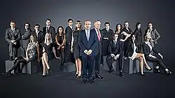 ![]() Promo group shot of Alan Sugar, Nick Hewer, and Karren Brady standing before the candidates for series 6 | |