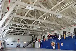 The wooden structure was one of the few buildings to survive the great fire of 1898.[3] Although it was a single structure it is referred to as "The Armouries" by members of The Royal Westminster Regiment. In 1895 contractor David Bain, using designs of Thomas Fuller, began construction on the site. The building was completed in 1896 but would still require the completion of the Gun Room in 1898. In addition to the parade square the building houses the Regimental Museum, offices, quartermaster store room, Officers' Mess and Warrants' and Sergeants' Mess (the Junior Ranks' Mess is housed in the adjoining building). It formerly housed a firing range in the basement and was eventually replaced with a Small Arms Training (SAT range) in a second building on the site. The building is a Recognized Federal Heritage Building.[1]