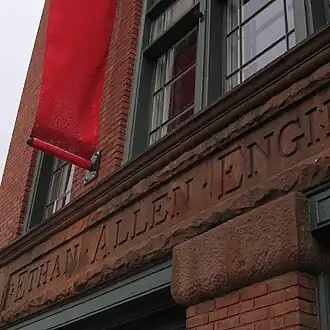 The Ethan Allen Firehouse is a historic building located in downtown Burlington. It was designed by local architect A.B. Fisher and completed in 1889, serving as home to the Ethan Allen Engine Company No. 4, one of Burlington's volunteer fire departments. In 1927, the building was acquired by the Burlington Police Department, and later, in 1967, it became unoccupied and fell into disrepair.[3]