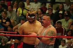In March 2004, The Barbarian won the NWA Virginia Heavyweight Championship, and feuded with David Flair for the title, until he was ruled ineligible to compete due to a lack of a valid Virginia wrestling license. In 2005, The Barbarian again teamed with The Warlord in Gladiator Championship Wrestling, and renewed his feud with Road Warrior Animal. In 2007, at the Annual Championship Wrestling/IRW Fun Fest Slam in Kingsport, Tennessee, The Barbarian wrestled 'Big' Steve Fury, the CW Heavyweight Champion, in front of 1,100 people. He also made an appearance in IWA Mid South, at the April Bloodshowers 2007 event, where he wrestled Jimmy Jacobs. In 2008, The Barbarian teamed with Demolition Ax (Bill Eadie), and managed by Ted DiBiase, in Seagrove North Carolina, defeating Cowboy Willie Watts and Leroy Greene. In 2009, The Barbarian teamed with the Iron Chief in the Ivan Koloff's tag team tournament in the Allied Independent Wrestling Federation (AIWF). In August 2012, Chikara announced that The Barbarian would be making his debut for the promotion in the following month's 2012 King of Trios tournament, where he will reunite with The Warlord and Meng as The Faces of Pain in reference to their previous team names Faces of Fear and Powers of Pain.[29] On 14 September, the team was eliminated from the tournament in the first round by Team ROH (Mike Bennett, Matt Jackson and Nick Jackson).[30][31] Two days later, on the final day of the tournament, The Barbarian and The Warlord took part in a tag team gauntlet match, from which they eliminated their old WWF rivals, Demolition, before being eliminated themselves by 1-2-3 Kid and Marty Jannetty.[30]