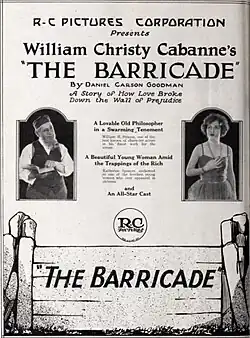 In July it was revealed that Cabanne would be directing a film title, The Barricade for Robertson-Cole. The story was penned by Daniel Carson Goodman, and the picture was to be filmed at R-C's Victor Studios in New York.[2] In mid-August it was announced that Dorothy Richards had been added to the cast.[3] In mid-September Ken Harlan, William A. Strauss, and Katherine Spencer joined the cast.[4] At the same time, it was also announced that Nina Cassavant had been cast in the film, although she does not appear in the final version of the film.[5]