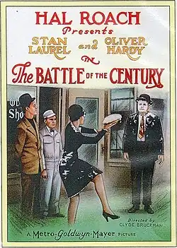 The Battle of the Century is a 1927 American silent short film starring comedy double act Laurel and Hardy, who appeared in 107 films between 1921 and 1951.[1] The film entered the public domain in the United States in 2023.