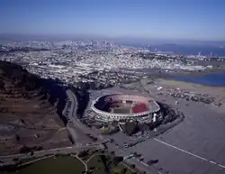 The Beatles' final paid concert of their career took place on 29 August 1966 at Candlestick Park in San Francisco, California. The band played to an audience of 25,000,[54] leaving 7,000 tickets unsold.[70] A local company called Tempo Productions was in charge of the arrangements. Due to the reduced ticket sales and the expense of paying the Beatles their prearranged $50,000 performance fee, in addition to having to hire an orchestra to satisfy the local musicians union, the concert resulted in a loss for the company.[71] At 9:27 pm, the Beatles took the stage and proceeded to play their eleven-song set.
