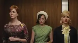 Later, the ladies of the agency leave the office one-by-one. Joan, Peggy, and Faye walk into the same elevator car as the doors close on them.