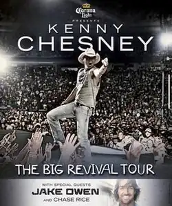 The Big Revival Tour presented by Corona Light was the fourteenth headlining concert tour by American country music artist Kenny Chesney, in support of his sixteenth studio album The Big Revival (2014). Ten of the shows were merged with Jason Aldean's Burn It Down Tour.[1] Eric Church co-headlined five of them with Chesney while Miranda Lambert co-headlined the show at Soldier Field in Chicago. This was the biggest country music concert tour of 2015 and the second-ranked North American one of the year, after grossing over $116.4 million.[2][3]