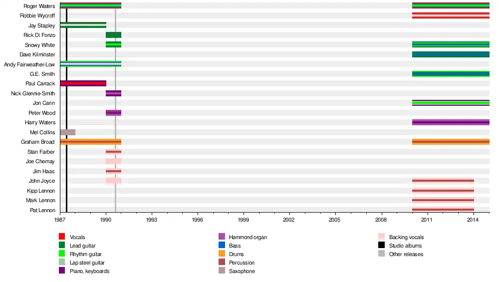 • Jon Carin – keyboards, lap steel guitar, programming, high-strung guitar on "Comfortably Numb", acoustic guitar on "Outside The Wall", electric guitar on "Run Like Hell", "Bring The Boys Back Home", "Comfortably Numb" and "Another Brick in the Wall, Part 3"