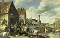 Later versions: The painter David Teniers the Younger, who married Brueghel's granddaughter, also made a painting with his own modern interpretation of the same proverbs in 1645, which also surround a central "Blue cloak" scene:
