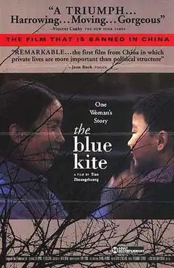 The Blue Kite (simplified Chinese: 蓝风筝; traditional Chinese: 藍風箏; pinyin: Lán fēngzheng) is a 1993 drama film directed by Tian Zhuangzhuang. Though banned by the Chinese government upon its completion (along with a ten-year ban on filmmaking imposed on Tian),[1] the film soon found a receptive international audience. Along with Zhang Yimou's To Live and Chen Kaige's Farewell My Concubine, The Blue Kite serves as one of the quintessential examples of China's Fifth Generation filmmaking, and in particular reveals the impact the various political movements, including Anti-Rightist Movement and Cultural Revolution, had upon directors who grew up in the 1950s and 1960s.