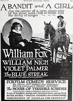 The Blue Streak is a 1917 American silent Western film directed by William Nigh and starring Nigh, Violet Palmer and Ruth Thorp.[1]