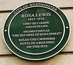 Plaque in commemoration of Rosa Lewis's services in the site of The Cavendish Hotel